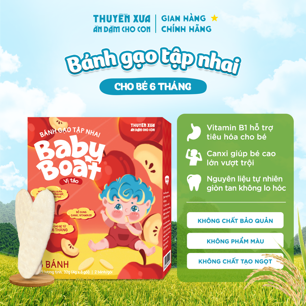 Hiểu những trăn trở đó, Thuyền Xưa mang đến dòng Bánh gạo tập nhai Baby Boat – vị Táo, giúp bé ăn ngon miệng, mẹ yên tâm chuẩn bị.